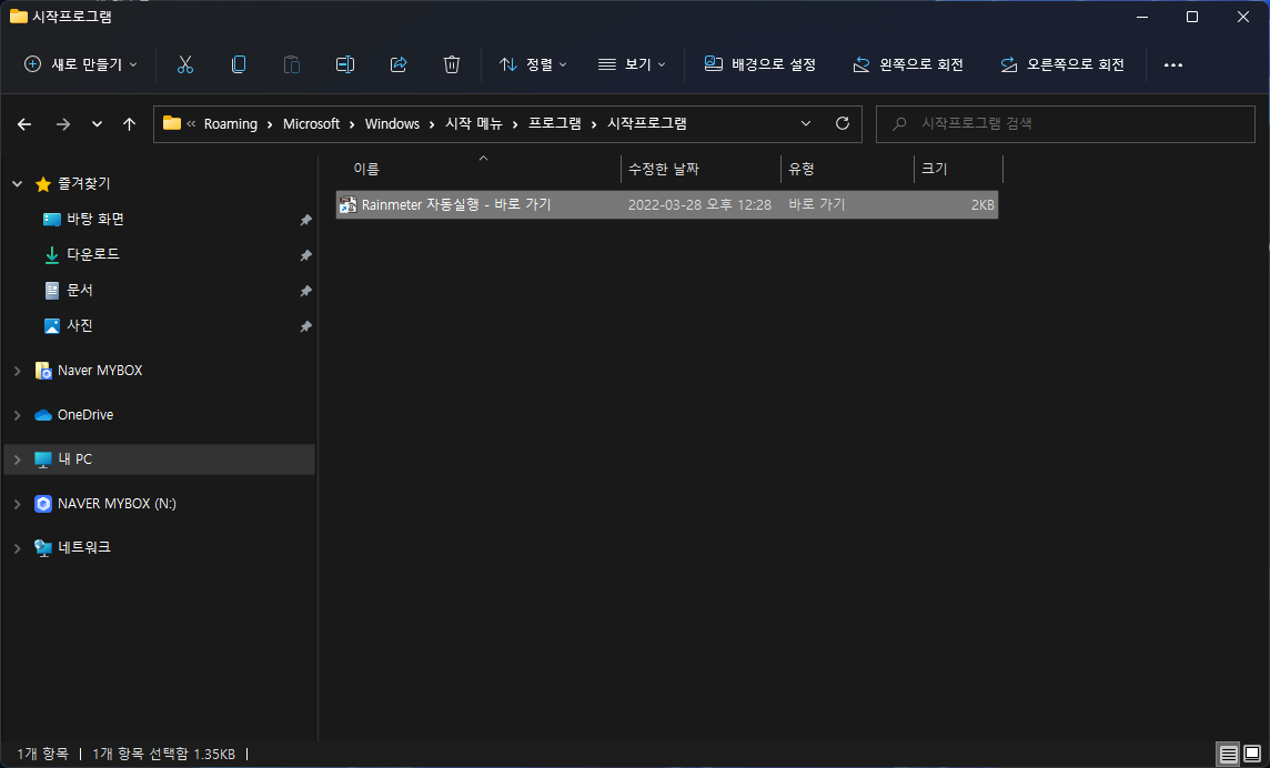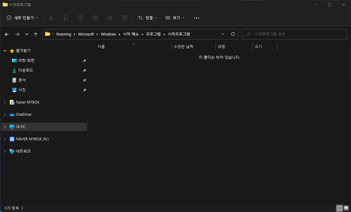 2. 아래 그림과 같이 시작프로그램 폴더로 이동됩니다.