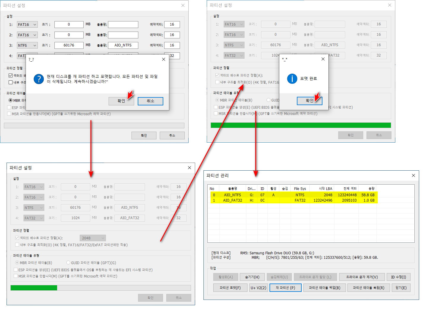 이절차가 끝나면 다시한번 FAT32드라이브도 동일한 절차대로 다시 실행합니다.
